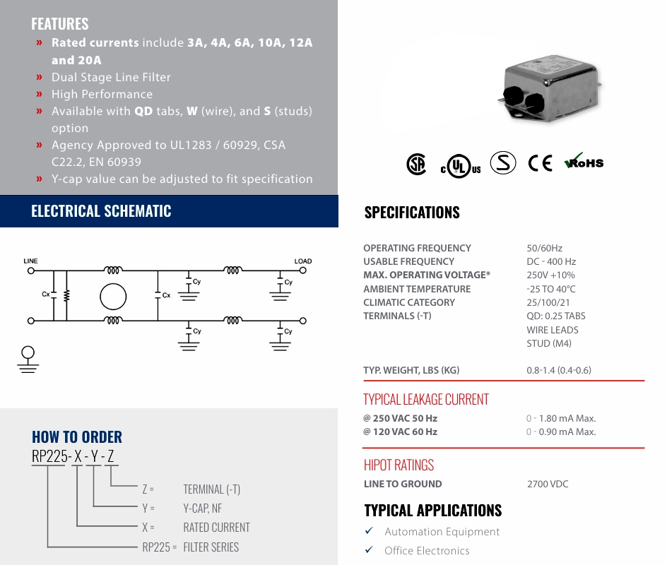 Produktinformationen "Netzfilter 6A 250V StFI Entstör-Filter 2,2mH+4,7nF EMV EMI RFI Filter RP225-6-4.7-QD"