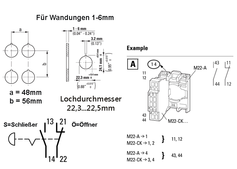 Kontaktbestückung Ö = Öffner: 1 Ö