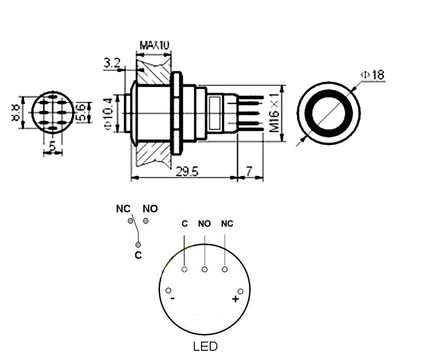 - 95-839-00900 = 18mm Vollmetall-Schalter ohne Beleuchtung
