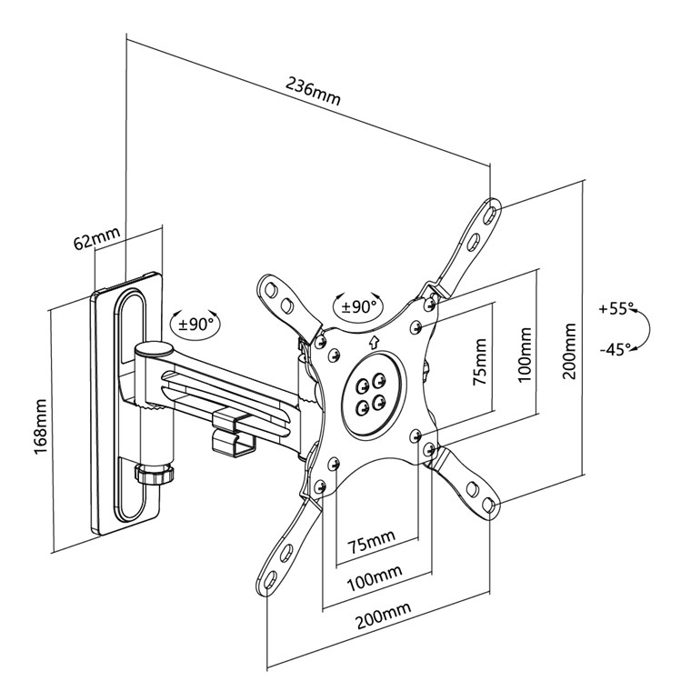 Halterungstyp TV Fullmotion Für Bildschirmgröße ( 33-109 cm / 13-43") max. Traglast 15 kg