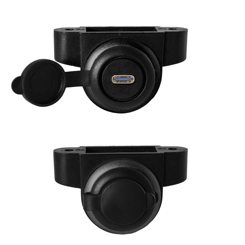 USB-C Ladegerät als Aufbau oder Einbaubuchse mit Klappdeckel Input 12-24V über Litzenkabel
